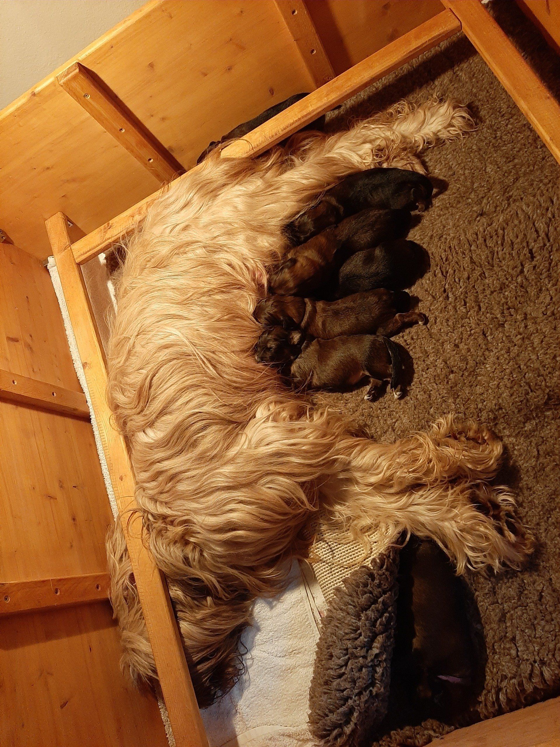 Elli genießt ihr Mutter Dasein, freut sich aber auch immer wenn sie mit auf den Spaziergang darf. Diese kleine Auszeit tut ihr immer richtig gut. Wenn wir dann, nach einer halben Stunde wieder zu Hause sind, will sie aber unbedingt sofort zu den Welpen. Aber für eine kleine Dusche muss sie sich die Zeit noch nehmen.