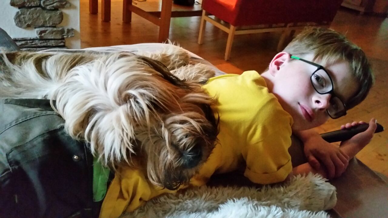 Wenn abends "Sofa Zeit" angesagt ist, ist sie die erste die mit auf dem Sofa liegt. Das liebt sie. Am liebsten wenn wir alle vier mit ihr zusammen kuscheln.